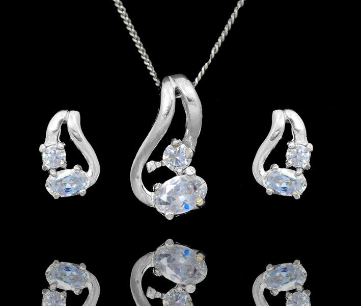 480/265 Kompet srebrny z cyrkoniami kolczyki wisiorek 925
