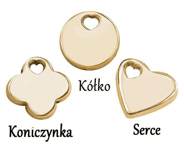 – zawieszka złocona pod grawer 12 mm, do wyboru serce kółko lub koniczynka;