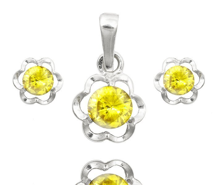 480/285 Komplet srebrny 925, żółte kwiatki z cyrkonią , kolczyki, wisiorek .