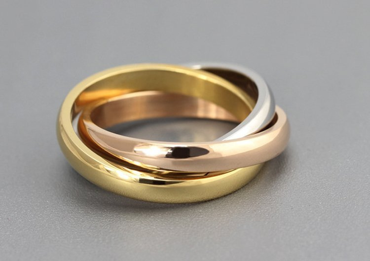 Opinie o 599/960 pierścionek potrójne obręcze stal różowe żółte złoto