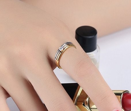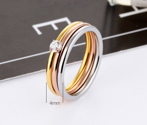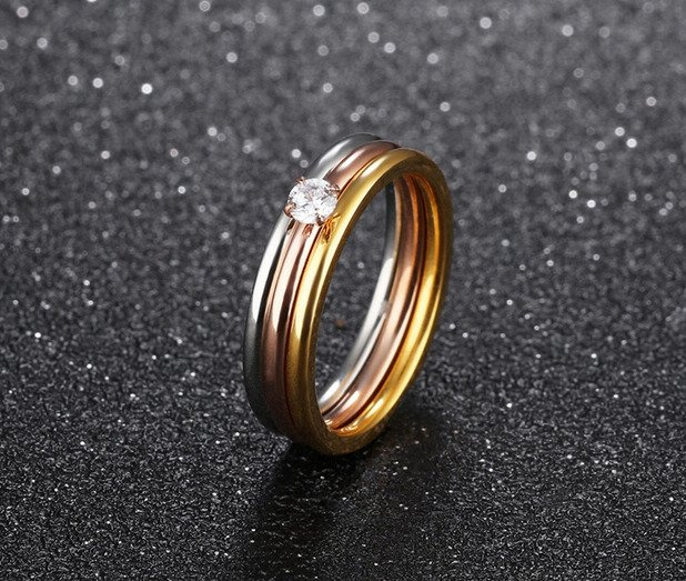 599/959 pierścionek potrójne obręcze stal różowe żółte złoto