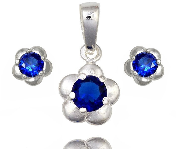 480/302 Kompet srebrne kwiatuszki z cyrkonią delikatne 925 niebieska
