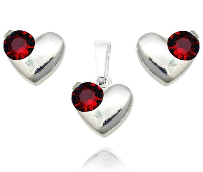 480/325 Komplet srebrny 925, serca z cyrkonią czerwoną kolczyki, wisiorek .