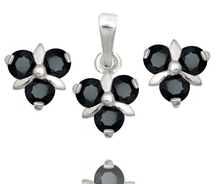 480/328 Komplet srebrny 925, kwiatuszki z cyrkonią czarną kolczyki, wisiorek .