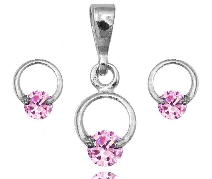 480/334 Komplet srebrny 925, cyrkonią różową kolczyki, wisiorek .