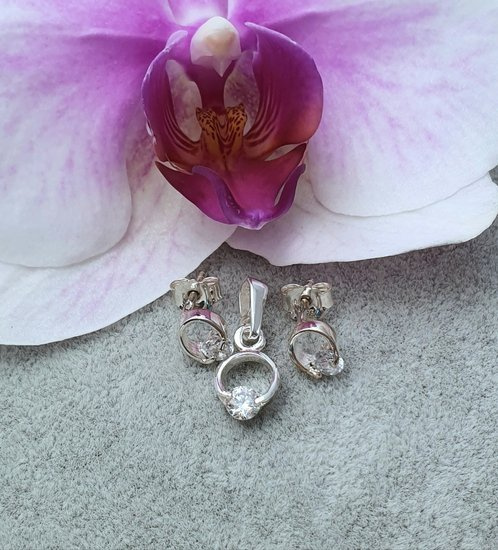 Subtelny komplet srebrny próby 925 . W skład kompletu wchodzą - kolczyki, wisiorek.
