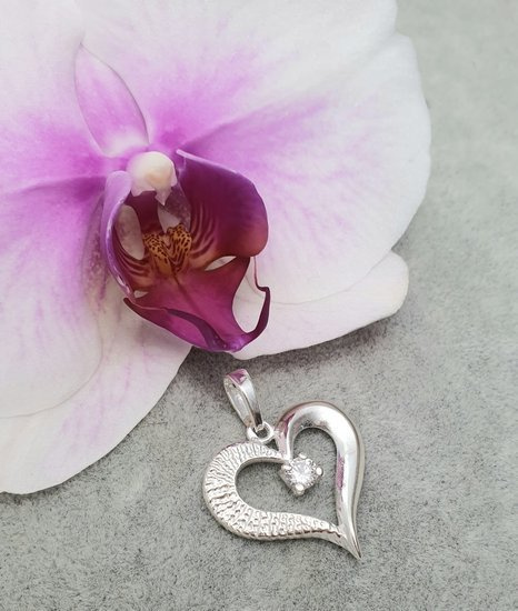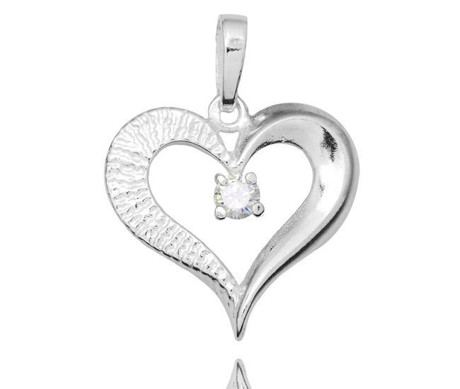 Srebrny wisiorek w kształcie serduszka. Duże i eleganckie serduszko, z osadzoną cyrkonią w centralnym punkcie.