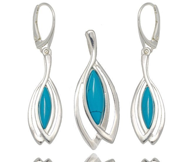 Komplet srebrny próby 925 z syntetycznym turkusem.