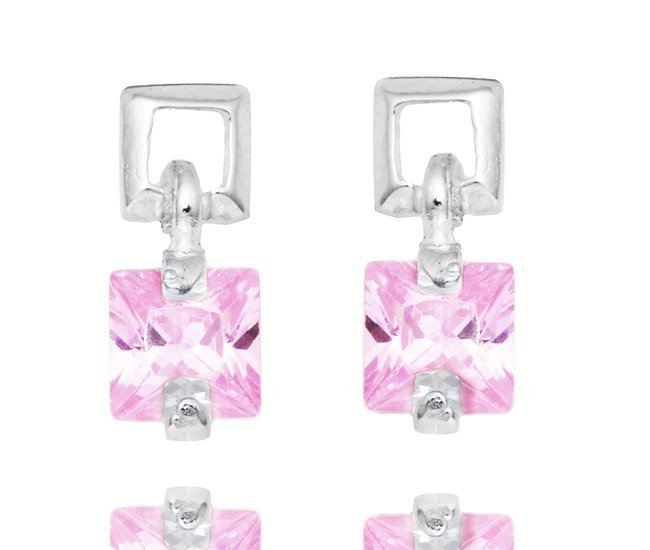 480/344 kolczyki srebrne 925 kwadraciki wiszące różowe
