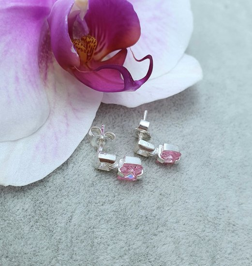 480/344  kolczyki srebrne 925 kwadraciki wiszące różowe