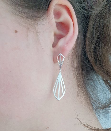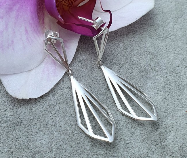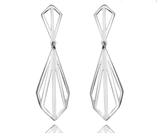 Kolczyki srebrne 925 w długimi ażurowymi elementami w kształcie diamentów. Kolczyki pięknie kołyszą się w uchu, lekkie, wyraziste. Kolczyki idealne na co dzień, jak i do bardziej wyszukanej kreacji.