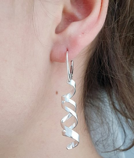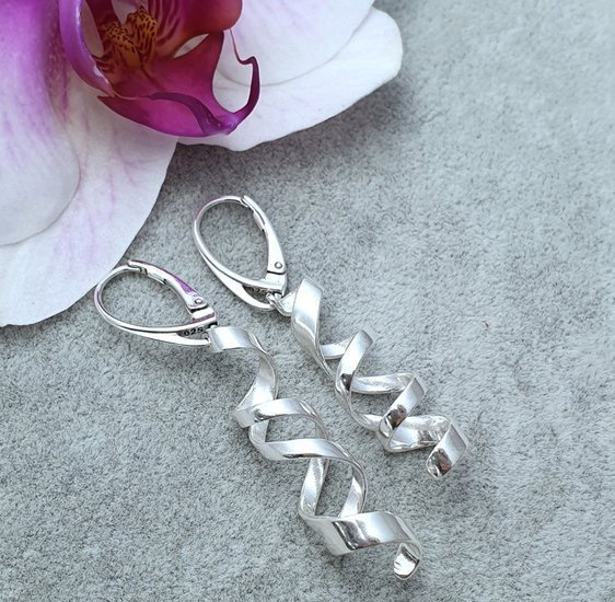 Kolczyki srebrne 925 z długim ozdobnym elementem w kształcie sprężyny. Kolczyki pięknie kołyszą się w uchu, lekkie, wyraziste. Kolczyki idealne na co dzień, jak i do bardziej wyszukanej kreacji.