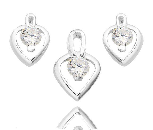 480/357 komplet srebrny 925 serca z cyrkonią biała kolczyki wisiorek
