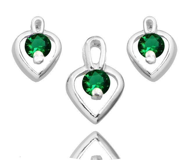 480/358 komplet srebrny 925 serca, cyrkonia zielona kolczyki wisiorek