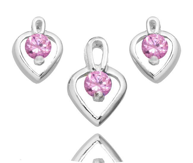 480/362 komplet srebrny 925 serca, cyrkonia różowa kolczyki wisiorek
