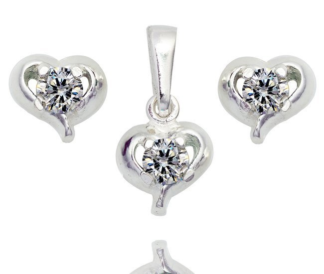 480/368 komplet srebrny 925 serca, cyrkonia biała kolczyki wisiorek