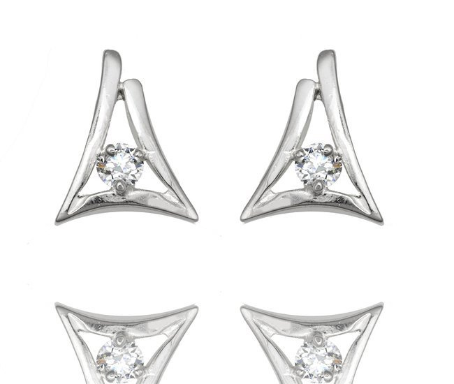 Delikatne kolczyki w kształcie ażurowych trójkątów.