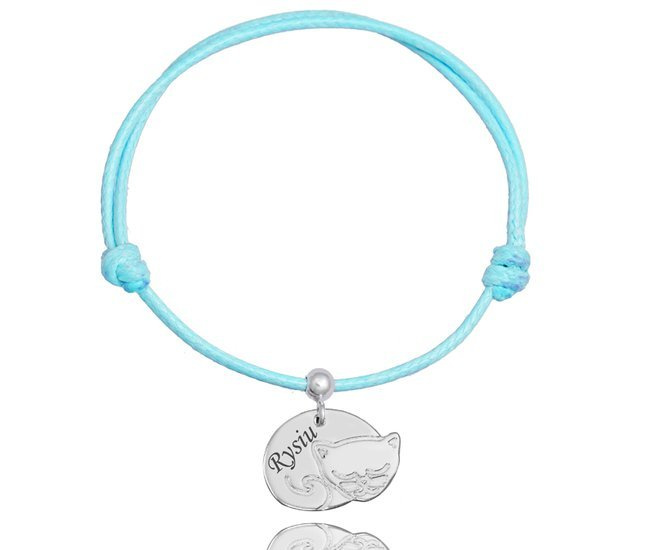 Przedstawiamy piękną bransoletkę z grawerem. Na sznureczku zawieszona zawieszka w kształcie kotka na której wygrawerujemy dowolny tekst . Możliwość również wyboru innej zawieszki z paletki. Nie masz pomysłu na prezent dla ukochanej kobiety - polecamy nasze bransoletki :-).