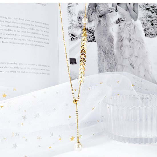 Naszyjnik z motywami liści oraz perełkami. Niezwykle ciekawa forma, serdecznie polecamy. Naszyjnik pasuje zarówno do eleganckich jak i codziennych stylizacji.