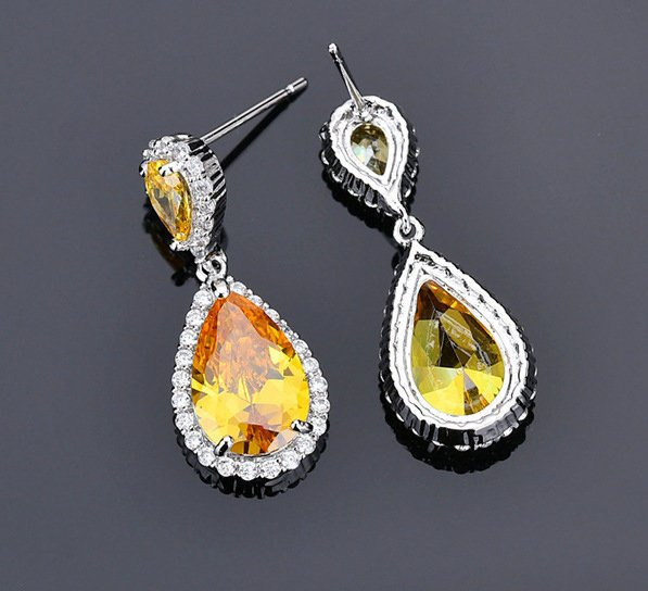 Kol 599/1018 Kolczyki ślubne eleganckie łezki cyrkonie żółte topaz