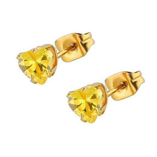599/1023 Kolczyki serduszka złote 3 mm, żółte cyrkonie stal szlachetna pozłacana