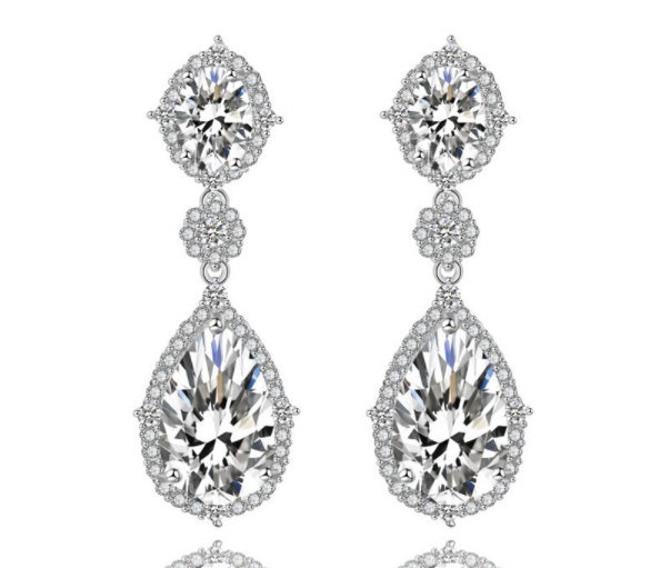 Kolczyki w wyjątkowo gustownym wzorze który łączy zarówno dużą pokaźną cyrkonię w formie łezki jak i mniejsze drobniejsze ozdoby. Model dla kobiet ceniących eleganckie i klasyczne doddatki . Kolczyki świetnie sprawdzą się jako biżuteria ślubna.