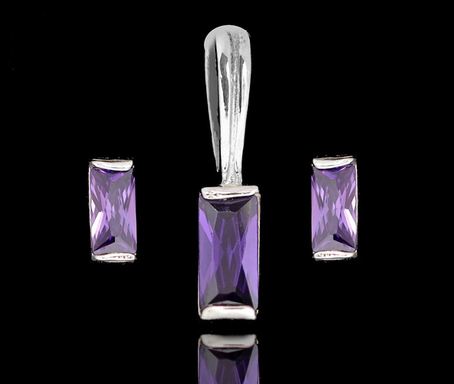 480/467 Komplet srebrny 925 prostokątne cyrkonie fioletowe