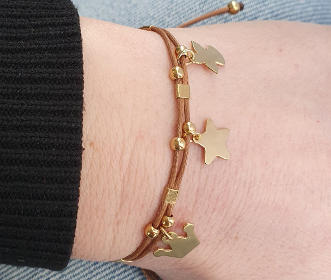 Przedmiotem oferty jest pozłacana bransoletka z zawieszkami do wyboru pod krótki grawerunek.