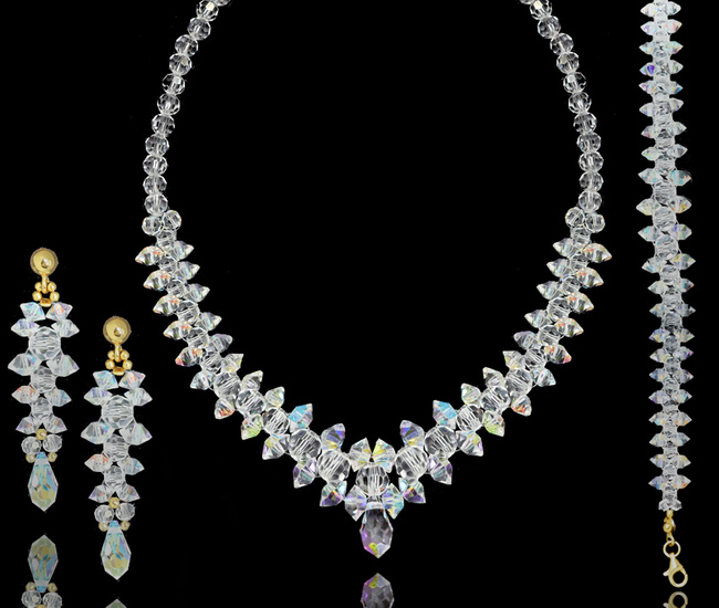 Przedmiotem oferty jest komplet składający się z naszyjnika, kolczyków oraz bransoletki.