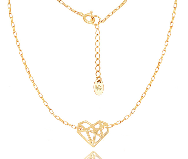 1383/24 naszyjnik srebrny 925 pozłacany serce ażurowe