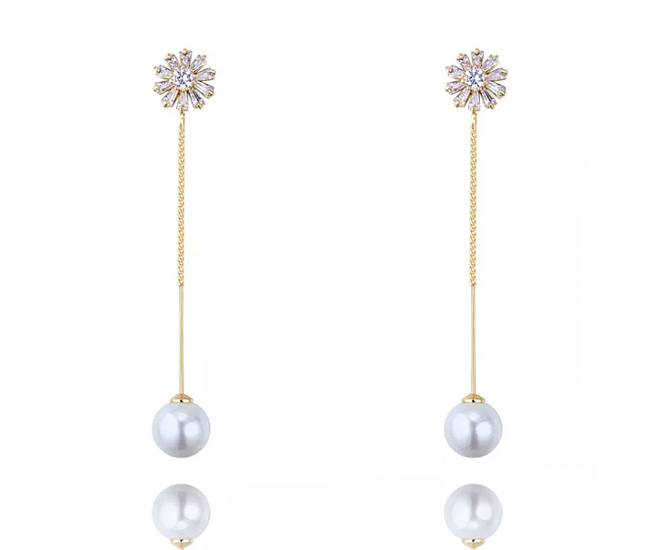 599/1078 kolczyki kwiatki złocone wysadzane cyrkonia z perłą