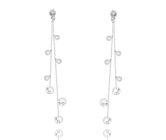 Przedmiotem oferty jest komplet z kryształkami oraz cyrkoniami. Klasyczny design sprawi, że kolczyki będą pasować kobiecie w każdym wieku, również świetnie sprawdzi się jako biżuteria ślubna.