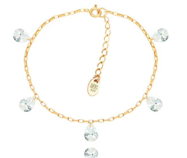 Przedmiotem oferty jest bransoletka srebrna 925 pozłacana z delikatnymi cyrkoniami w kształcie łezek.