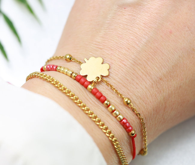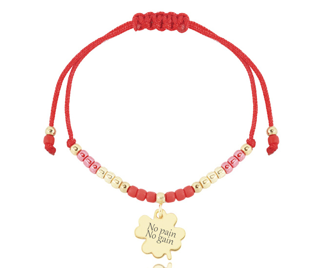 1418 bransoletka srebrna 925 złocona z koniczynką grawerowana