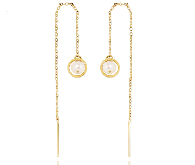 1426 kolczyki przeciągane długie z kółeczkiem i perłą stal szlachetna złote