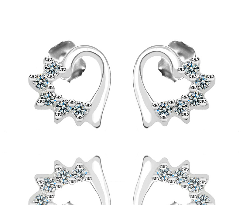 Kolczyki w kształcie serduszek z cyrkoniami. Delikatne i subtelne – będą dobrym uzupełnieniem eleganckiej stylizacji jak również świetnie dopełnią codzienny ubiór.