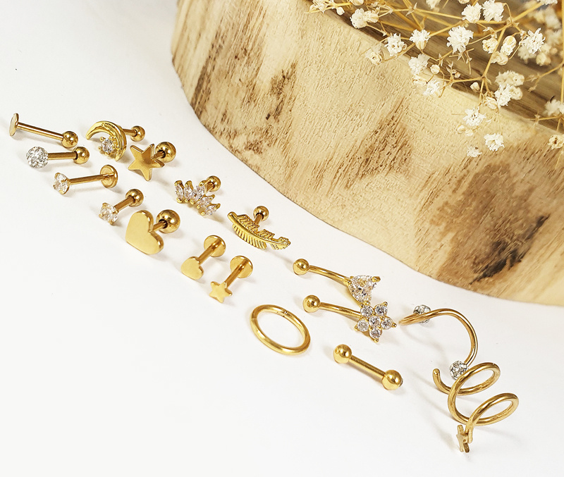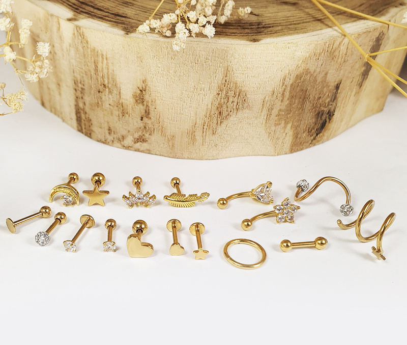 1478 kolczyk do piercingu delikatna gwiazdka stal złocona