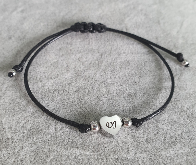 1538 bransoletka z grawerunkiem serce na sznureczku