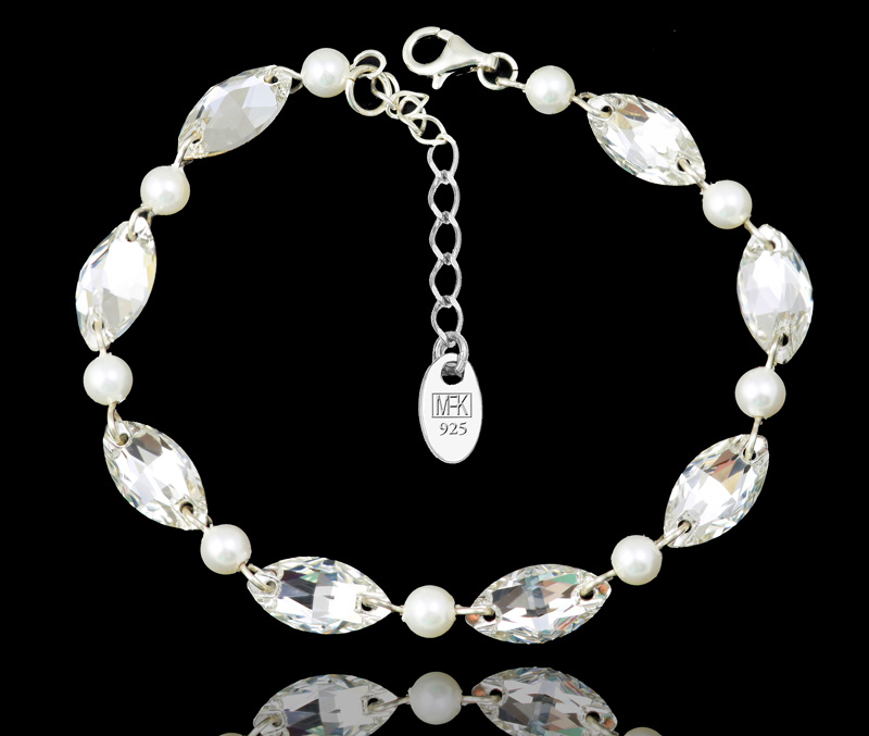 1509 bransoletka srebrna 925 z cyrkoniami i perełkami
