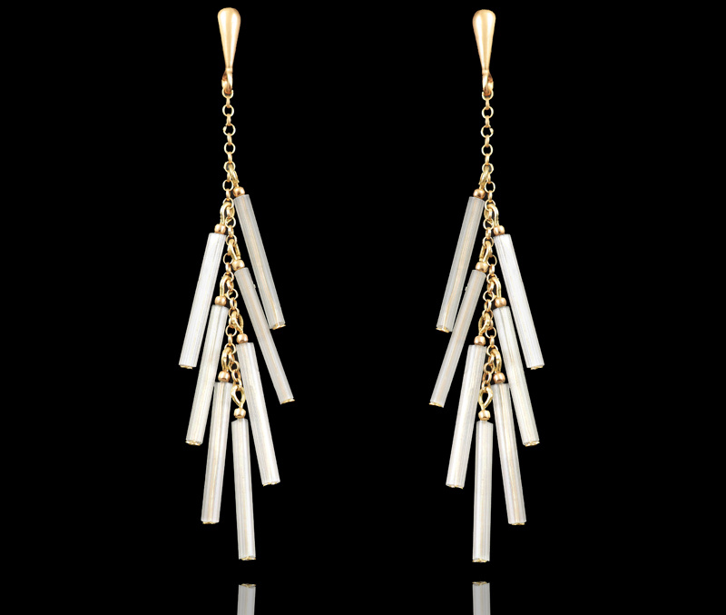 - szklane rurki 2 cm zamocowane na mosiężnych pozłacanych szpilkach;