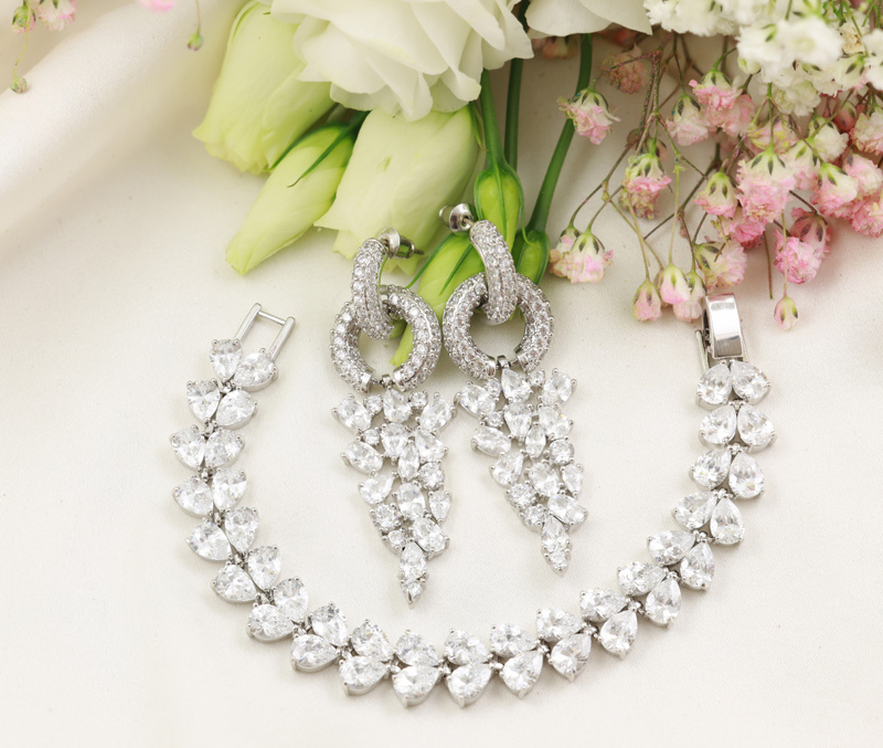 • Przedmiotem oferty jest elegancki komplet wysadzany cyrkoniami.