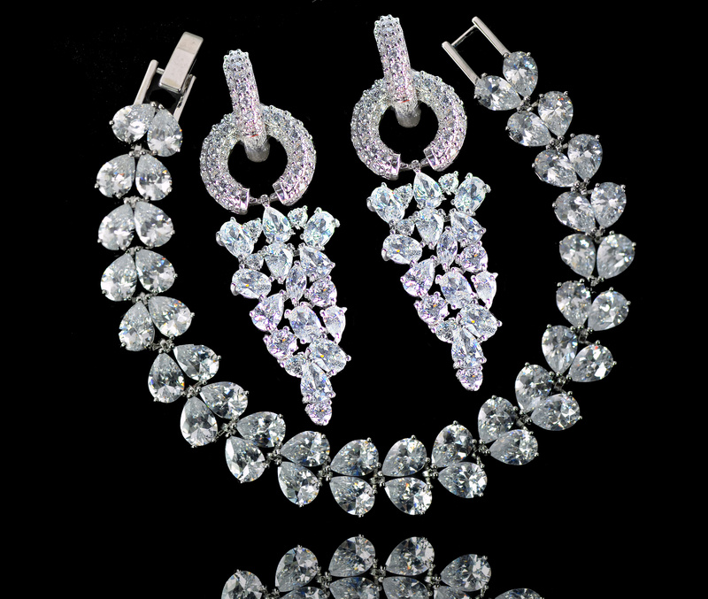 Przedmiotem oferty jest elegancki komplet wysadzany cyrkoniami. Jak brylanty...Wyjątkowy i misterny opatentowany szlif sprawia, iż kryształki mają bardzo szeroki współczynnik odbicia światła w każdym kierunku. Podobnie jak w przypadku brylantów występuje zjawisko brylancji w postaci iskrzących się odbić, promienie świetlne padające na taflę kamienia załamują się, co daje efekt wielobarwnych migotliwych refleksów.