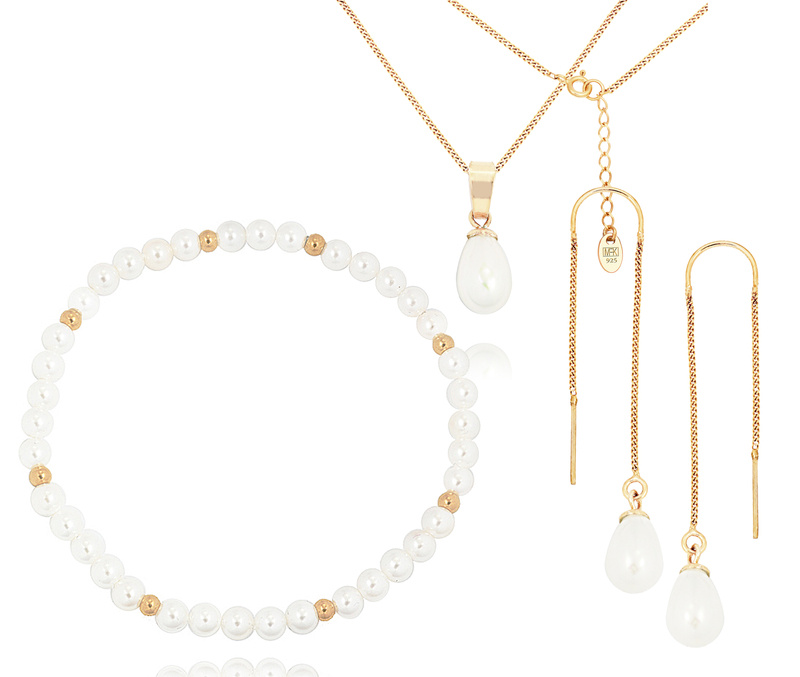 1500 komplet srebrny 925 pozłacany z perłami