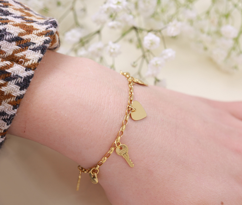 Ta piękna i różnorodna bransoletka, będzie idealnym dodatkiem do stylizacji dla pań lubiących masywniejsze akcesoria. Różnorodność kształtu zawieszek i blaszka pod grawer w kształcie serca, dodaje biżuterii wyjątkowości i niepowtarzalnego charakteru. Ta oferta jest również propozycją podarunku dla ukochanej kobiety - czy to partnerki, mamy, siostry czy przyjaciółki.