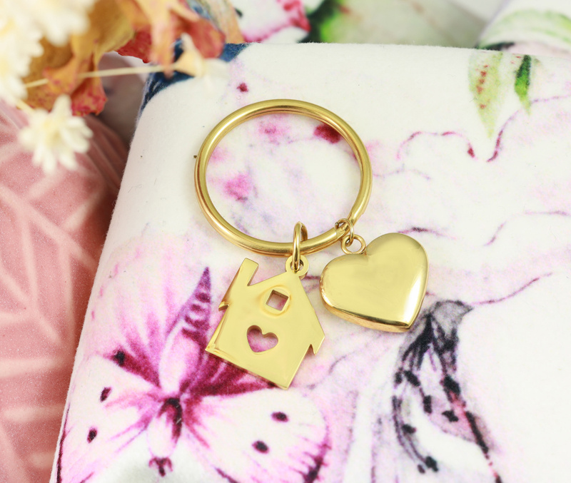 1559/2 brelok do kluczy z Twoim grawerunkiem pozłacany dom