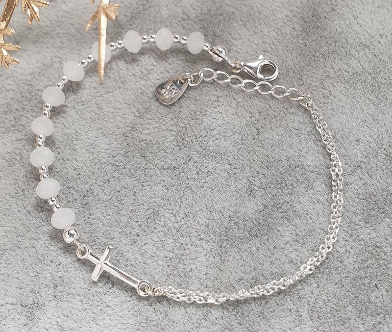 1571/22 bransoletka różaniec srebro 925 z kryształkami i krzyżem