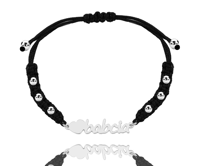 1593/4 bransoletka srebrna 925 serce na sznurku Dzień Babci