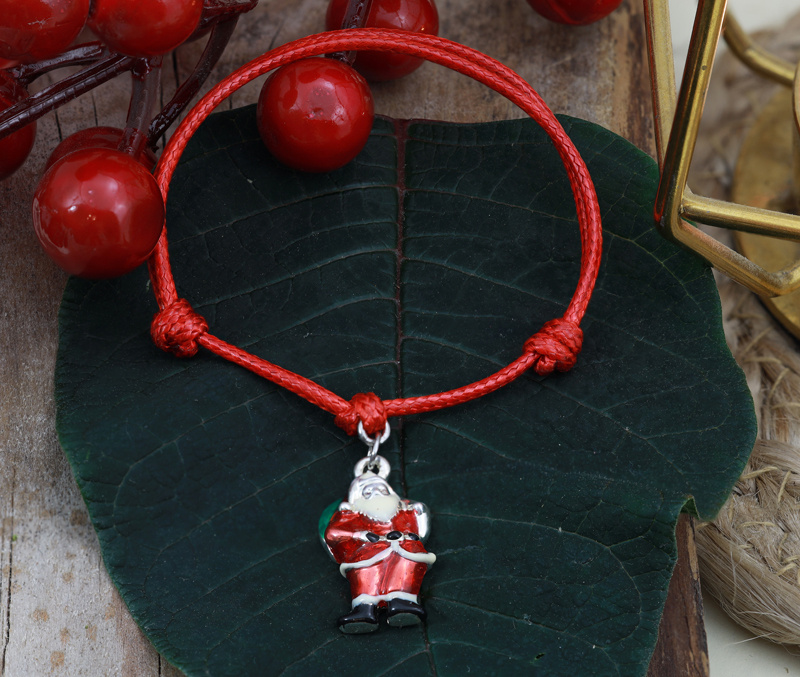1596/19 bransoletka charms na sznureczku srebrzona świąteczna Mikołaj