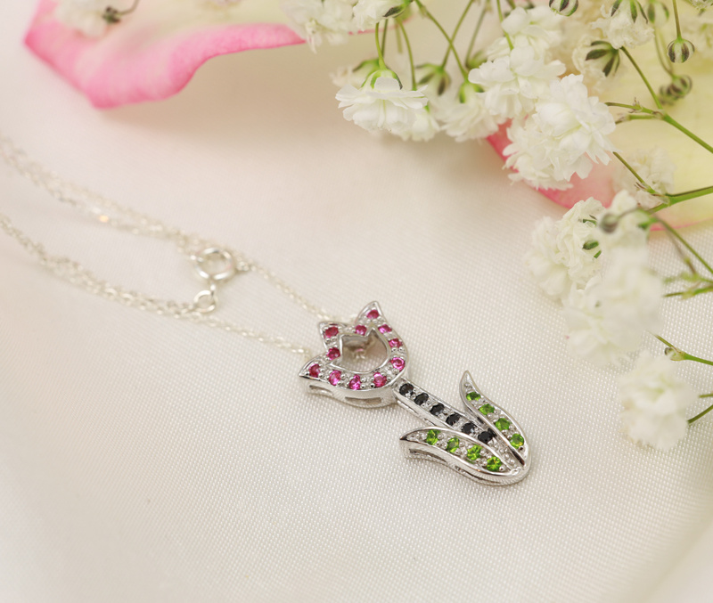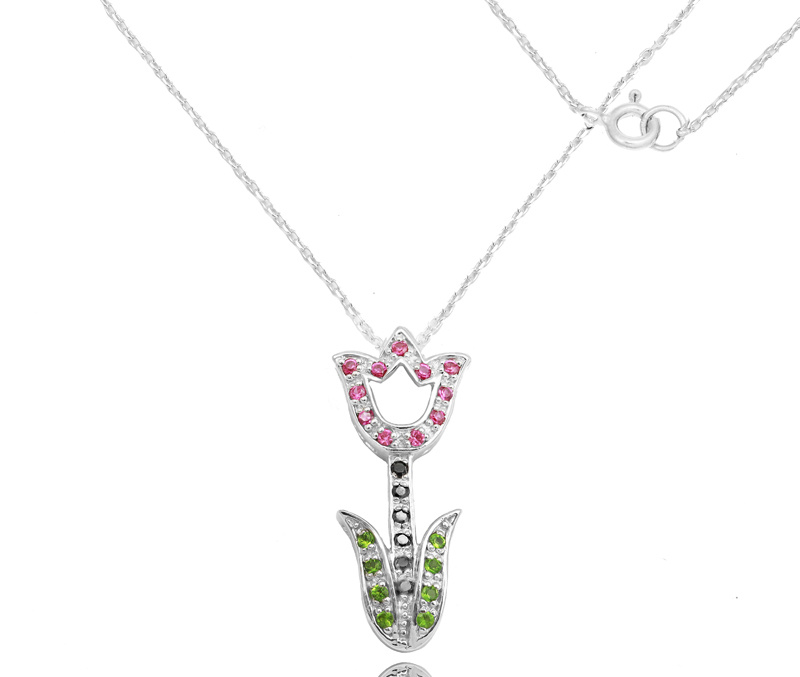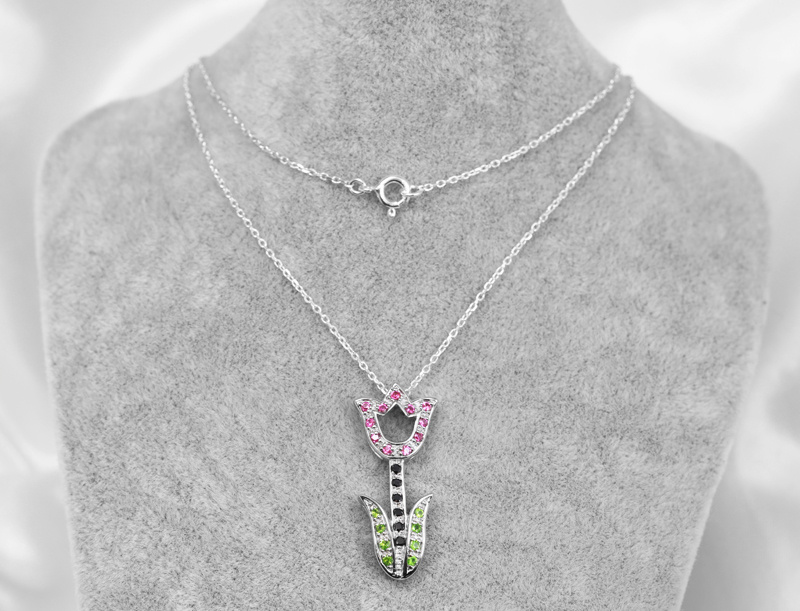 1608 naszyjnik srebrny 925 tulipan wysadzany cyrkoniami kwiat