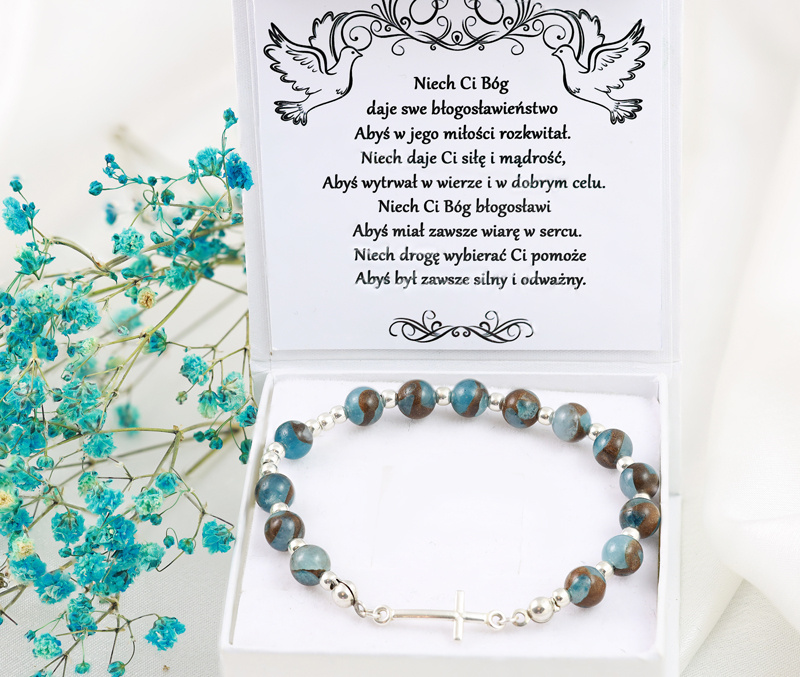 Piękny, srebrny różaniec jest idealnym prezentem na Pierwszą Komunię Świętą czy Bierzmowanie. W połączeniu z eleganckim pudełkiem z dedykacją stworzy niezapomniany upominek.